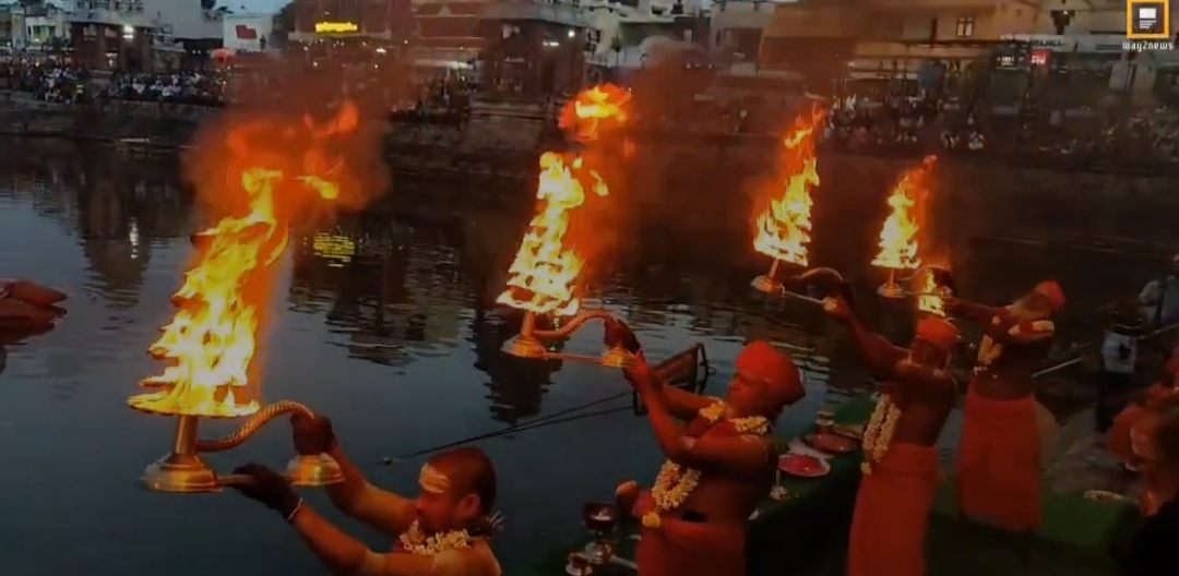 இந்த ஆரத்தி விழாவில் ஆயிரக்கணக்கான பக்தர்கள் கலந்து கொண்டு வழிபாடு நடத்தினர்.