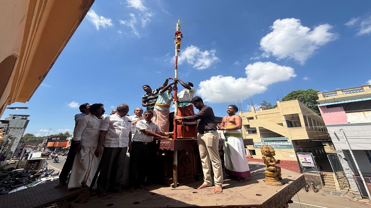 இந்நிலையில் சித்திரை பெருவிழாவிற்கான கொடியேற்றம் கடந்த திங்கட்கிழமை காலை நடைபெற்றது. முன்னதாக பஞ்சமூர்த்திகளுடன் சந்திரசேகரர் கோவிலுக்குள் புறப்பாடாகி கொடிமரம் அருகே சிறப்பு அலங்காரத்தில் எழுந்தருளினார். பின்னர் கொடிமரத்திற்கு மஞ்சள், சந்தனம், பால், தயிர் உள்ளிட்ட பல்வேறு திரவியங்களால் சிறப்பு அபிஷேகங்கள் செய்யப்பட்டது, இதையடுத்து பிரமாண்ட கொடிமரத்தில் ஆயிரக்கணக்கான பக்தர்களின் பக்தி கோஷத்தின் நடுவே மங்கல வாத்தியம் முழங்க கொடி ஏற்றப்பட்டது. தொடர்ந்து தினமும் காலை, மாலையில் சுவாமி புறப்பாடு நடைபெற்று வருகிறது.