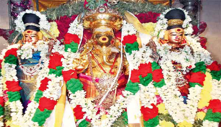 புராண காலத்தில் தட்சன் செய்த யாகத்தில் கலந்துகொண்ட சூரியனுக்கு, சிவனால் கிடைத்த தண்டனைக்கு பரிகாரமாக விநாயகரை நோக்கித் தவமிருந்ததாகவும், அதனால் மகிழ்ந்த விநாயகர், இந்திரனின் பாவத்தைப் போக்க அவன் விரும்பியபடி ஒளிக் கிரகணங்கள் தன் மீது பட்டு வழிபாடு செய்ய அருள் புரிந்ததாக புராண செய்தி கூறுகிறது.