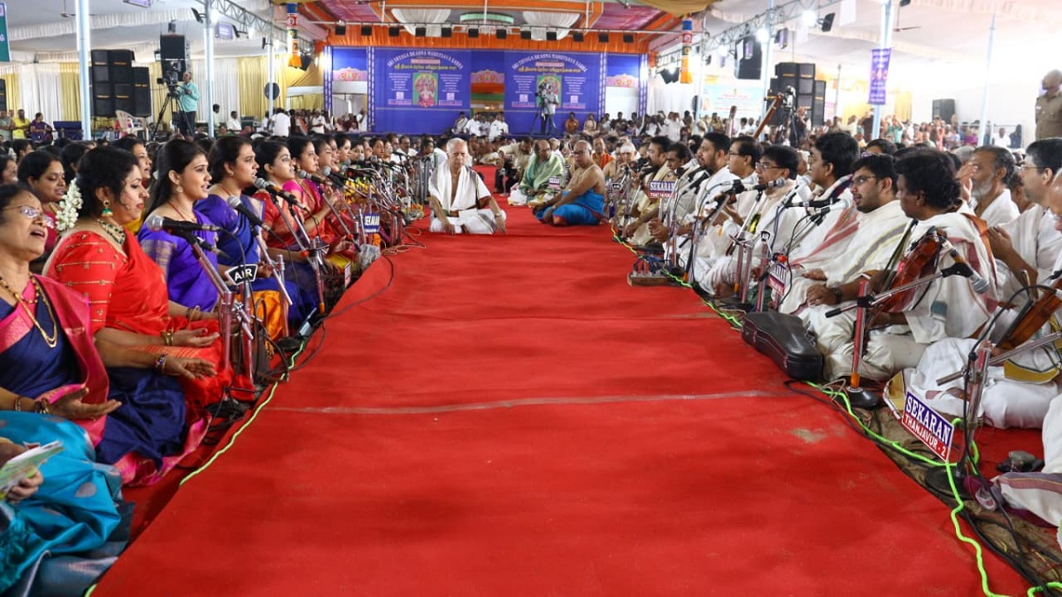 தஞ்சாவூர்: தஞ்சாவூர் மாவட்டம் திருவையாறில் சத்குரு தியாகராஜ சுவாமிகளின் 179ம் ஆண்டு ஆராதனை விழாவின் நிறைவு நாளான இன்று ஆயிரக்கணக்கான இசைக் கலைஞர்கள் பஞ்சரத்ன கீர்த்தனைகளைப் பாடி இசையஞ்சலி செலுத்தினர்.
