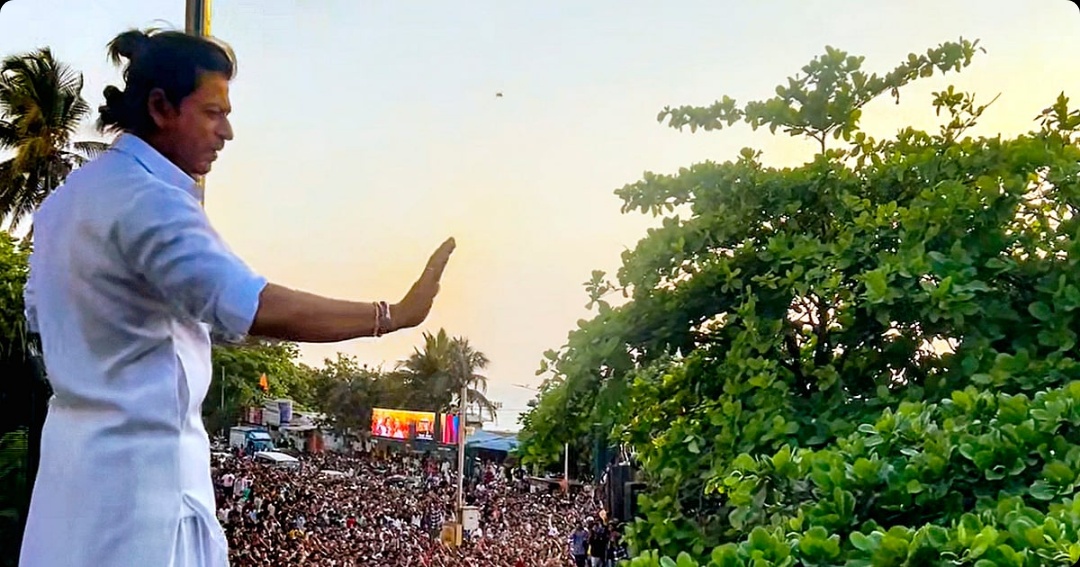 இதுகுறித்து, ஷாருக்கான் தமது எக்ஸ் தளப் பக்கத்தில் வெளியிட்டுள்ள பதிவில், “வெளியே வந்து நின்று உங்கள் அனைவரையும் பார்க்க முடியாது என்பதை வருத்தத்துடன் தெரிவிக்கிறேன். காரணம், பாதுகாப்பு அதிகாரிகள் என்னிடம் இந்த அறிவுறுத்தலை வழங்கியிருக்கின்றனர். இதற்காக உங்களிடம் ஆழ்ந்த வருத்த்த்தை தெரிவிக்கிறேன். கூட்ட நெரிசல் ஏற்படலாம் என்பதைக் கருதி நம் ஒவ்வொருவரின் பாதுகாப்பு கருதியே இந்த அறிவுறுத்தல் வழங்கப்பட்டிருக்கிறது.