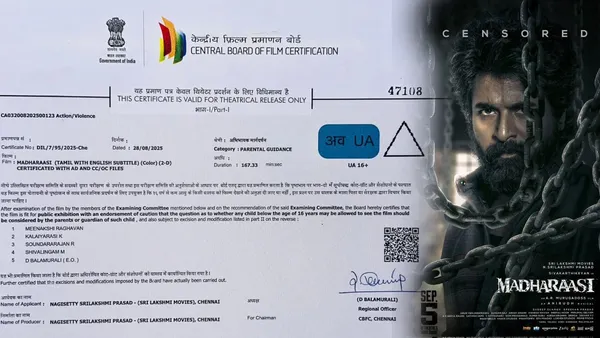 சென்சார் போர்டு இந்த படத்திற்கு U/A சான்றிதழ் வழங்கியுள்ளது. குறிப்பாக 16 வயதுக்கு மேற்பட்டவர்களே பார்க்க தகுதியானதாக அறிவிக்கப்பட்டுள்ளது. ரன்னிங் டைம் இரண்டு மணி நேரம் 47 நிமிடம் 33 நொடிகள் என நிர்ணயிக்கப்பட்டுள்ளது. சமீபத்தில் நீண்டநேரம் ஓடும் படங்கள் விமர்சன ரீதியாக எதிர்பார்த்த வரவேற்பை பெறாத சூழலில், மதராசி எந்தளவுக்கு வெற்றியடையும் என்ற ஆர்வம் அதிகமாகியுள்ளது.