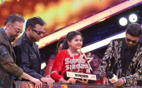 விஜய் டிவியில் ஒளிபரப்பாகும் சூப்பர் சிங்கர் நிகழ்ச்சி பார்வையாளர்களிடையே நல்ல வரவேற்பைப் பெற்றுள்ளது. இந்த நிகழ்ச்சி ஜூனியர் மற்றும் சீனியர் என இரண்டு பகுதிகளாக ஒளிபரப்பாகிறது. தற்போது, ஜூனியர் சீசன் 10-ன் ‘கிராண்ட் ஃபினாலே’ ஞாயிற்றுக்கிழமை நேரு விளையாட்டு வளாகத்தில் பிரமாண்டமாக நடைபெற்றது. இதில், காயத்ரி பட்டத்தை வென்றவராக அறிவிக்கப்பட்டார்.