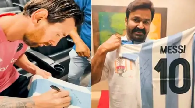 மோகன்லால் கால்பந்து வீரர் மெஸ்ஸியின் தீவிர ரசிகர் என்பது எல்லோருக்கும் தெரிந்தது தான். அவர் தற்போது அனுப்பி இருக்கும் கிப்ட் மோகன்லாலை நெகிழ்ச்சி அடைய வைத்திருக்கிறது. மோகன்லால் பெயரை கைப்பட எழுதி, கையெழுத்து போட்ட ஜெர்சியை தான் மெஸ்ஸி கிப்ட் ஆக அனுப்பி இருக்கிறார்.