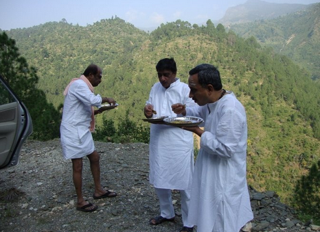 வேட்டியை மடித்து கட்டிக்கொண்டு நின்று சாப்பிடும் புகைப்படங்கள் சமூக ஊடகங்களில் வெளியாகியுள்ளன. இன்று அவர் பத்ரிநாத் கோயிலுக்குச் செல்கிறார்.