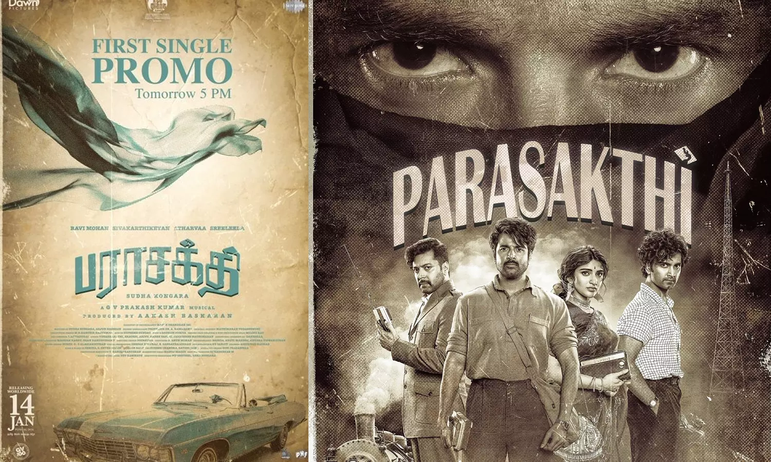 இந்நிலையில், ‘பராசக்தி’ திரைப்படத்தின் முதல் பாடலின் ப்ரொமோ இன்று மாலை 5 மணிக்கு வெளியாகும் என படக்குழு அறிவித்துள்ளது.