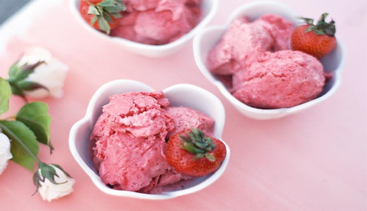 இப்படி செய்தால் ஐஸ்க்ரீம் நன்கு மிருதுவாக வரும். இதை கப்புகளில் வைத்து, ஸ்ட்ராபெரி பழத்தால் அலங்கரித்து ஜில்லென்று பரிமாறவும்.
