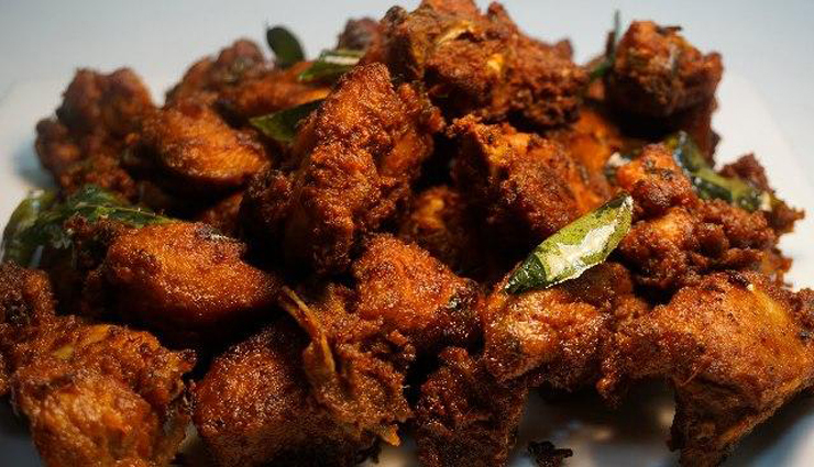 சிக்கன் – அரை கிலோசோம்பு – 1 ஸ்பூன்காய்ந்த மிளகாய் – 7பூண்டு – 10 பல்கறிவேப்பிலை – சிறிதளவுஉப்பு – தேவையான அளவுதேங்காய் எண்ணெய் – 5 ஸ்பூன்