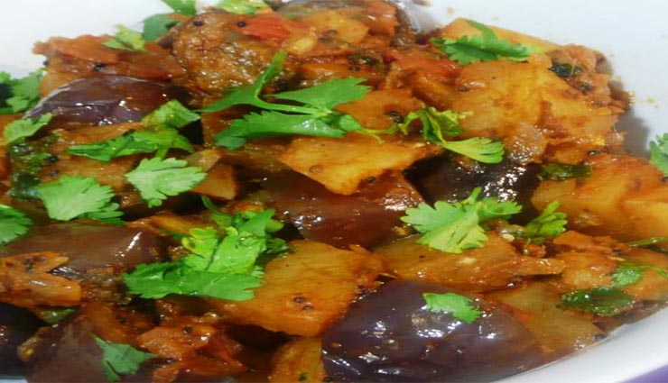 செய்முறை: முதலில் உருளைக்கிழங்கை குக்கரில் போட்டு வேக வைத்து தோலுரித்துசிறிய துண்டுகளாக வெட்டி வைத்துக் கொள்ளவும். பின்பு கத்தரிக்காயை சிறிய துண்டுகளாக வெட்டி தண்ணீரில் போட்டு வைக்கவும். வெங்காயத்தை பொடிதாக நறுக்கிக் கொள்ளவும்.