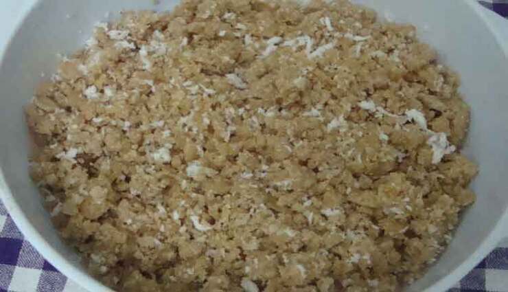 பிறகு அந்த மாவை ஒரு பாத்திரத்தில் எடுத்து உப்பு சேர்த்து கலந்து வைத்து விட்டு, பின்னர் சிறிது சிறிதாக தண்ணீர் கலந்து புட்டுக்கு விரவுவது போல் விரவிக்கொள்ள வேண்டும். அதில் தேங்காய் திருவையும் சேர்த்து விரவிக்கொள்ள வேண்டும்.