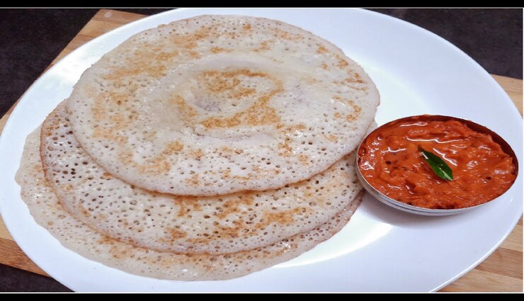 பிறகு துருவிய தேங்காய், புளித்த தயிர், உப்பு மற்றும் சிறிதளவு தண்ணீர் ஊற்றி அரைக்கவும். பிறகு பாத்திரத்திற்கு மாற்றி உப்பு மற்றும் தண்ணீர் சேர்த்து கலந்து 8 மணிநேரம் புளிக்க வைக்கவும்.
