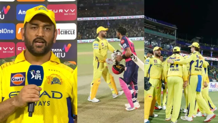 ஐபிஎல் 2025 தொடரின் 62வது லீக் போட்டி மே 20ஆம் தேதி டெல்லியில் நடைபெற்றது. இதில் சென்னை சூப்பர் கிங்ஸ் மற்றும் ராஜஸ்தான் ராயல்ஸ் அணிகள் மோதின. ராஜஸ்தான் அணி சிஎஸ்கேவை 6 விக்கெட் வித்தியாசத்தில் தோற்கடித்து 4வது வெற்றியுடன் இத்தொடரை முடித்தது. முதலில் பேட்டிங் செய்த சிஎஸ்கே அணி, நிர்ணயிக்கப்பட்ட 20 ஓவர்களில் 8 விக்கெட்டுகளை இழந்து 187 ரன்கள் மட்டுமே குவித்தது. தேவால்ட் ப்ரேவிஸ் 42, ஆயுஷ் மாத்ரே 43 மற்றும் சிவம் துபே 39 ரன்கள் எடுத்தனர். ராஜஸ்தான் பவுலர்களில் யுவ்திர் சிங் மற்றும் ஆகாஷ் மாத்வால் தலா மூன்று விக்கெட்டுகளை கைப்பற்றினர்.