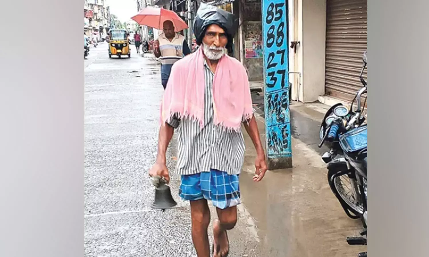 பிரம்மய்யா கடைவீதிகளில் மணி அடித்துக் கொண்டு செல்வதை வெளியூர்க்காரர்கள் ஆச்சரியத்துடன் பார்க்கிறார்கள்.