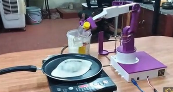 நீங்கள் ஒரு எரிவாயு அடுப்பில் தோசை கல்லை வைத்தால், இந்த ரோபோ தானாகவே தோசை சுடும். இந்த ரோபோவுக்கு நான் திண்டி (சிற்றுண்டி) என்று பெயரிட்டுள்ளேன். என் வீட்டில் பெண்கள் தோசை சுடுவதில் சிரமப்பட்டதால் இந்த ரோபோவை உருவாக்கினேன்,” என்று அவர், தோசை சுடும் ரோபோவின் வீடியோவைப் பகிர்ந்து கொண்டு கூறினார்.