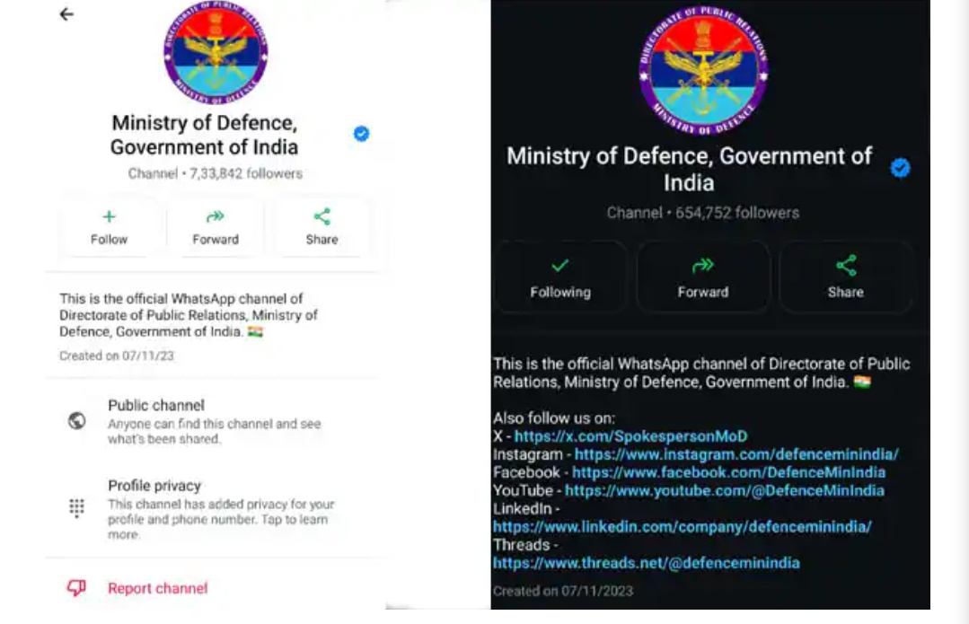 புதுடில்லியில் மத்திய பாதுகாப்பு அமைச்சகம் பொதுமக்களுக்கு ஒரு முக்கிய வேண்டுகோளை தெரிவித்துள்ளது. போர் தொடர்பான உண்மை தகவல்களை அறிய தங்களது அதிகாரப்பூர்வ வாட்ஸ்அப் சேனலை பின்தொடருமாறு கேட்டுக்கொண்டுள்ளது. ச