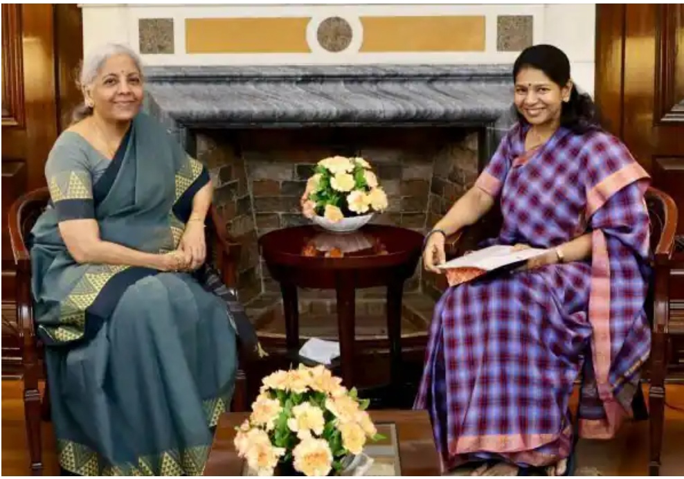 புதுடில்லியில், மத்திய நிதி அமைச்சர் நிர்மலா சீதாராமனை திமுக எம்பி கனிமொழி சந்தித்தார். இந்த சந்திப்பு நாடாளுமன்ற வளாகத்தில் நடந்தது. இதில், செங்கல் மீதான ஜிஎஸ்டி வரியை குறைக்க வேண்டும் என்ற கோரிக்கையை முன்வைத்தார். கனிமொழி, இக்கோரிக்கையை எழுத்துப்பூர்வமாக மனுவாக அளித்ததாக தகவல் வெளியாகியுள்ளது.