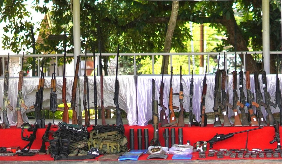 அப்போது கையெறி குண்டுகள், வெடிகுண்டுகள், ஏ.கே. ரக துப்பாக்கிகள் உட்பட 86 ஆயுதங்கள் 974 வெடிமருந்து பொருட்கள் பறிமுதல் செய்யப்பட்டன.