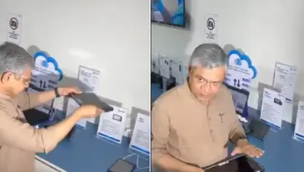 டேப்லெட்டை கீழே போட்டார். அது உடையவில்லை. எந்த கீறலும் இல்லை. டேப்லெட்டில் ஏறினார். அப்போதும் மாத்திரை சேதமடையவில்லை. இந்த வீடியோவை அமைச்சர் அஸ்வினி வைஷ்ணவ் சமூக வலைதளங்களில் பதிவிட்டுள்ளார். மேலும், “இந்த டேப்லெட் மேக் இன் இந்தியா திட்டத்தின் கீழ் தயாரிக்கப்பட்டது. இது உள்நாட்டில் வடிவமைக்கப்பட்டு தயாரிக்கப்படுகிறது.