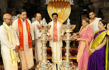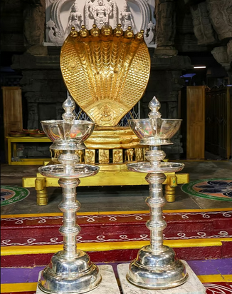இந்த விளக்குகள் இறைவனின் இருபுறமும் எப்போதும் எரிந்து கொண்டிருப்பதாகக் கூறப்படுகிறது. இந்த விளக்குகள் வழங்கப்பட்டு 300 ஆண்டுகள் ஆகிவிட்ட நிலையில், அதே மைசூர் மகாராஜா குடும்பத்தைச் சேர்ந்த ராஜமாதா பிரமோதா தேவி நேற்று தனது குடும்பத்தினருடன் திருமலைக்கு வந்து 100 கிலோ எடையுள்ள 2 பெரிய வெள்ளி விளக்குகளை இறைவனுக்கு காணிக்கையாக வழங்கினார்.