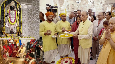 பின்னர், அவர் சுவாமி தரிசனம் செய்தார். கோயில் நிர்வாகத்தால் அவருக்கு மரியாதை செலுத்தப்பட்டு பிரசாதம் வழங்கப்பட்டது. பின்னர் மொரீஷியஸ் பிரதமர் நவீன் சந்திர ராம்கூலம் தனது மனைவி வீணாவுடன் அயோத்தி சென்றார். அவரை முதலமைச்சர் யோகி ஆதித்யநாத் வரவேற்றார்.