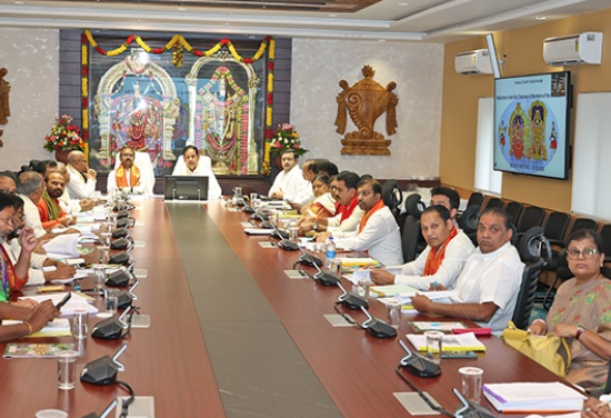 திருமலை: திருப்பதி தேவஸ்தான அறங்காவலர் குழு நேற்று திருமலையில் உள்ள அன்னமைய்யா பவனில் நடைபெற்றது. இதில், பல்வேறு தீர்மானங்கள் ஒருமனதாக நிறைவேற்றப்பட்டன. இது தொடர்பாக, அறங்காவலர் குழுத் தலைவர் பி.ஆர். நாயுடு மற்றும் தேவஸ்தான நிர்வாக அதிகாரி சியாமள ராவ் செய்தியாளர்களிடம் கூறியதாவது:-