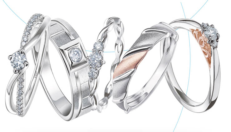 பெண்களுக்கென்றே வடிவமைக்கப்பட்டிருக்கும் மோதிரங்கள் நேர்த்தி மற்றும் ஸ்டைலான தோற்றத்தைத் தருவதாக இருக்கின்றன. ப்ளெயின் வளையங்கள், பிளாட்டினத்தில் வைரக்கற்கள் பதித்து செய்யப்பட்ட வளையல்கள், ஆண் மற்றும் பெண்கள் ஜோடியாக அணிந்து கொள்வது போல் அதாவது ஆணின் கையில் அணிந்திருக்கும் மோதிரத்தில் பாதி இதய வடிவமும் பெண்ணின் கையில் அணிந்திருக்கும் மோதிரத்தில் பாதி இதய வடிவமும் ஆக மொத்தம் இருவரும் தங்கள் கைகளில் அணிந்து கொண்டு சேர்த்து வைத்துப் பார்த்தால் முழு இதய வடிவம் தெரிவது போலும் அழகழகான டிசைன்களில் வடிவமைக்கப்பட்டிருக்கும் பிளாட்டின மோதிரங்கள் சந்தையில் கிடைக்கின்றன.