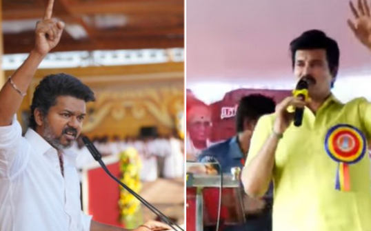 பிரதமரை அவர் கேலி செய்கிறார். பிரதமர் மோடி முஸ்லிம் மக்களுக்கு துரோகம் இழைத்துவிட்டார் என்று அவர் கூறுகிறார். ஆனால், இதே விஜய் ஏப்ரல் 16, 2014 அன்று கோயம்புத்தூரில் பிரதமர் மோடியைச் சந்திக்க ஒரு பூனைக்குட்டியைப் போல கைகளைக் கட்டிக்கொண்டு அமர்ந்திருந்தார். அப்போது விஜய் ஏன் பிரதமரைச் சந்தித்தார்? கச்சத்தீவை மீட்டெடுக்க வேண்டும் என்ற கோரிக்கையை வலியுறுத்துவதா? மீனவர் பிரச்சினை பற்றிப் பேசுவதா? ஒன்றுமில்லை.