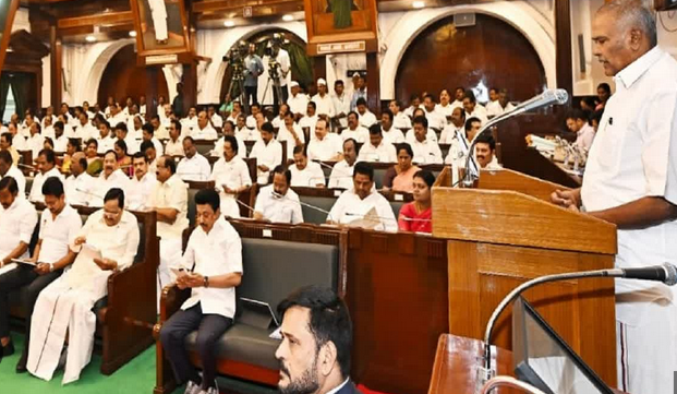 சபாநாயகர் அவர்களை எச்சரித்திருந்தார், ஆனால் அதிமுக உறுப்பினர்கள் சபையிலிருந்து வெளிநடப்பு செய்தனர். வெளிநடப்பு செய்த அதிமுக உறுப்பினர்கள் சபையின் நுழைவாயிலில் நின்று கோஷங்களை எழுப்பினர்.
