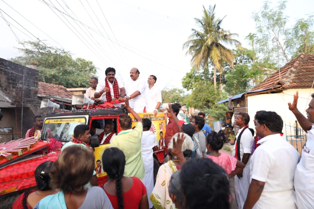 நேற்று முன்தினம் மாலை வல்லம் பேரூர் பகுதியில் வல்லம் பேருந்து நிலையம், பழைய அக்ரஹாரத் தெரு, அகிழாங்கரை மேட்டுத் தெரு, ரெட்டிபாளையம் ,பிள்ளையார் கோவில் தெரு, பெரியார் நகர், அண்ணாசிலை ஆகிய பகுதிகளில் மேளதாளம் முழங்க வீடு வீடாக சென்று சண்.ராமநாதன் வாக்கு கேட்டார்.