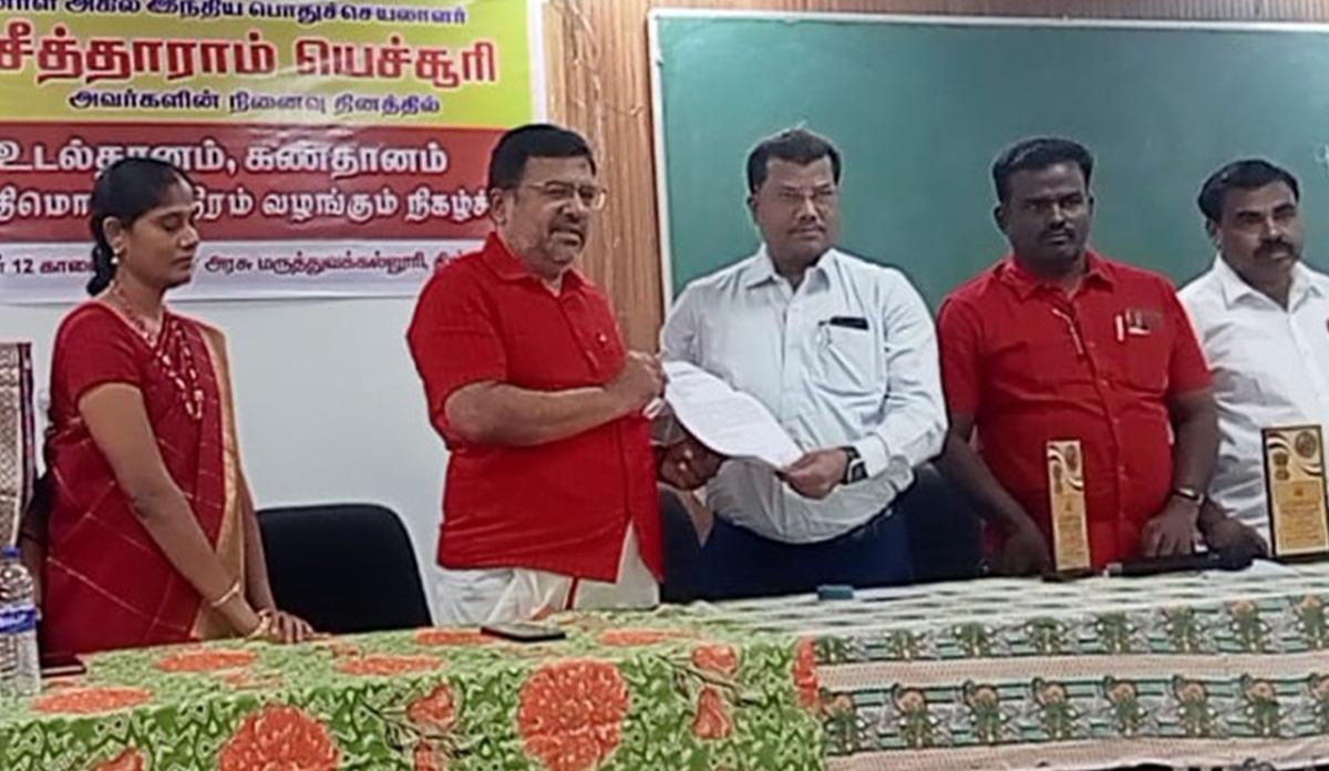கரூர், காந்திகிராமத்தில் உள்ள அரசு மருத்துவக் கல்லூரி மருத்துவமனையில் இந்திய மார்க்சிஸ்ட் கம்யூனிஸ்ட் கட்சி சார்பில் முன்னாள் அகில இந்திய பொதுச் செயலாளர் சீத்தாராம் யெச்சூரி முதலாம் ஆண்டு நினைவு தினத்தை முன்னிட்டு கண்தானம் மற்றும் உடல்தானம் பதிவு நிகழ்ச்சி ஜோதிபாசு தலைமையில் நடைபெற்றது.