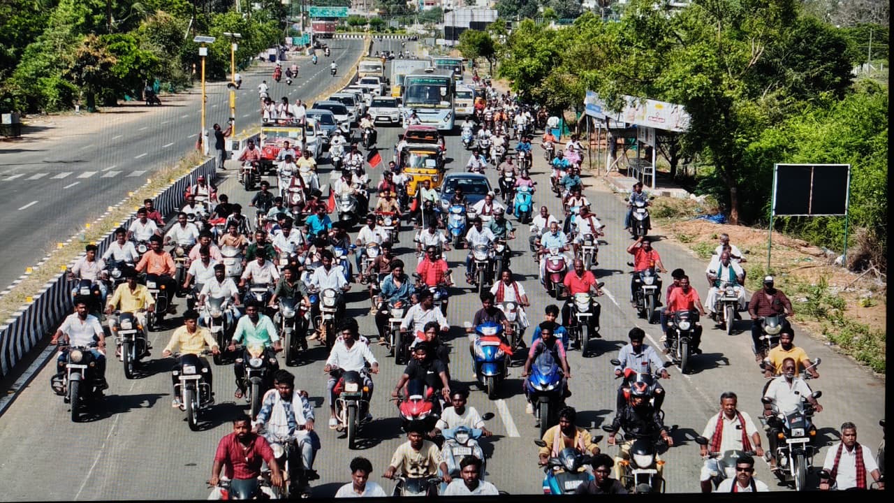 500க்கும் அதிகமான இருசக்கர வாகனங்கள் தொடர தஞ்சை திமுக வேட்பாளர் பிரச்சாரம்