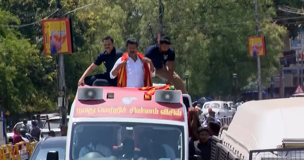 இதனால் அரசியல் கட்சி தலைவர்கள் தங்கள் கட்சி மற்றும் கூட்டணி கட்சி வேட்பாளர்களை ஆதரித்து தீவிர பிரசாரம் செய்து வருகின்றனர். தமிழக வெற்றிக்கழக தலைவர் விஜய், சென்னை பெரம்பூர் மற்றும் திருச்சி கிழக்கு தொகுதிகளில் போட்டியிடுகிறார். இந்த நிலையில் இன்று மாலை திருச்சி கிழக்கு தொகுதியில் விஜய் பிரசாரம் மேற்கொள்கிறார். இதற்காக சென்னையில் இருந்து தனி விமானத்தில் இன்று விஜய் திருச்சி புறப்பட்டு சென்றார்.