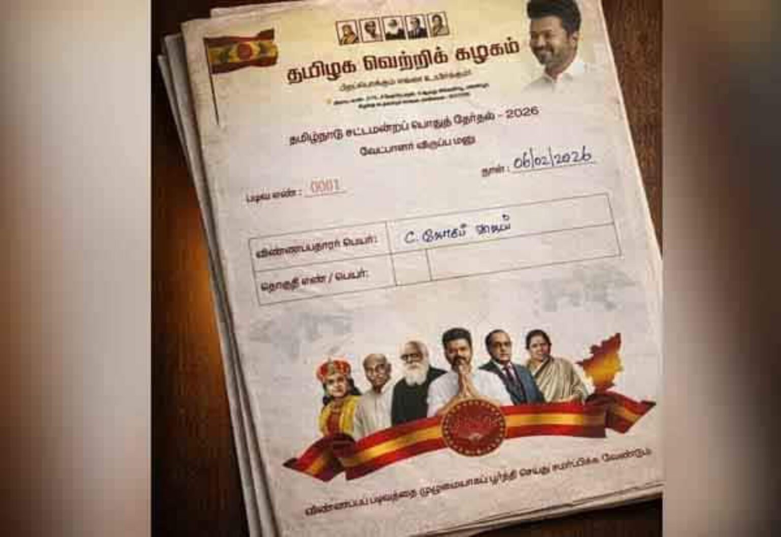 சட்டசபை தேர்தலில் போட்டியிட விருப்பம் உள்ள கட்சியினருக்கு, விருப்ப மனு வினியோகம், சென்னை பனையூரில் உள்ள தவெக அலுவலகத்தில் துவங்கியது. தவெக தலைவர் ஜோசப் விஜய் என்ற பெயரில் முதல் மனுவை, அக்கட்சி பொதுச்செயலர் ஆனந்த் பெற்றுக்கொண்டார்.