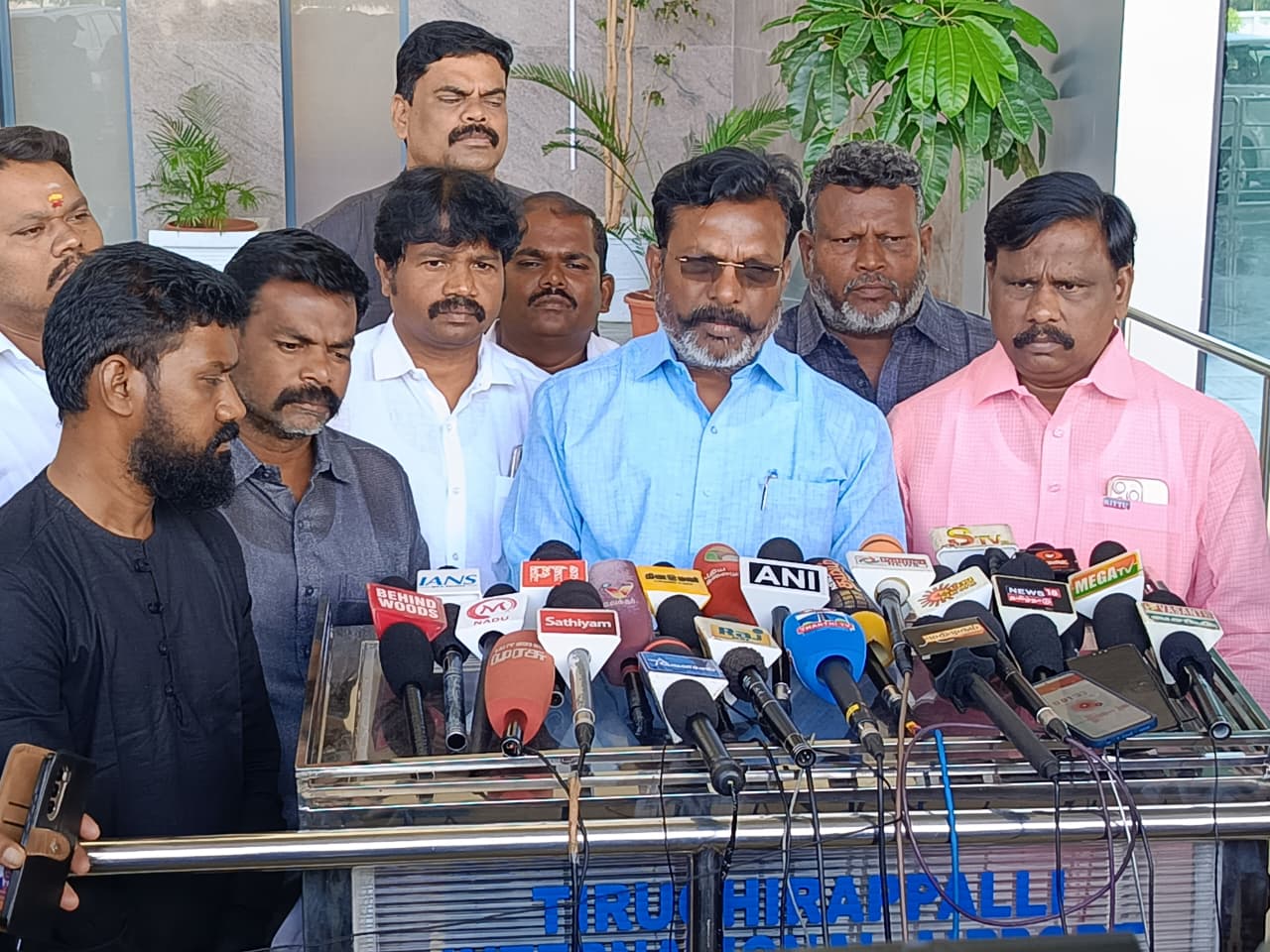 திருச்சி: கரூர் சம்பவத்தில் தமிழக அரசு அறிவித்துள்ள10 லட்சம் இழப்பீடு தொகையை 50லட்சமாக உயர்த்தி வழங்க வேண்டும் என்று விடுதலை சிறுத்தைகள் கட்சி தலைவர் திருமாவளவன் வலியுறுத்தினார்.