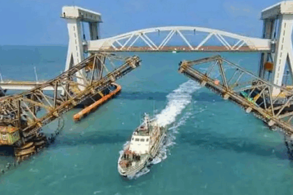 ராமேஸ்வரம்: ராமேஸ்வரம் அருகே பாம்பன் கடலில் உள்ள ஷெர்ஜர் தொங்கு பாலம் 24.2.1914 அன்று ரயில்…