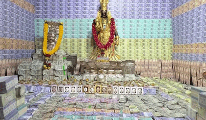 ஆந்திராவில் 7 கிலோ தங்கம் மற்றும் 5 கோடி ரூபாய் நோட்டுகளால் அலங்கரிக்கப்பட்ட அம்மன்