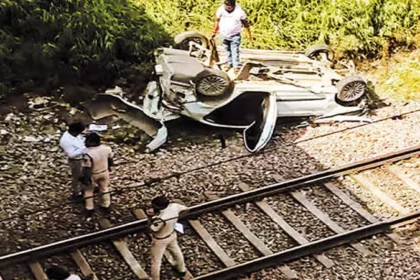 முகர்பா சவுக் ரெயில் மேம்பாலத்தில் இருந்து கீழே விழுந்த கார்