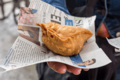 தடையை மீறி அச்சிடப்பட்ட காகிதத்தில் உணவுப் பொருட்கள் பொட்டலம்