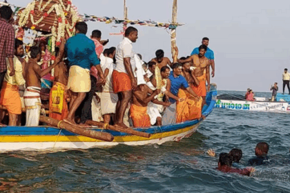 சிவபெருமானுக்காக கடலில் விடப்பட்ட தங்க மீன்கள்: ஆயிரக்கணக்கான மீனவர்கள் பங்கேற்பு