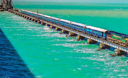 1988-ம் ஆண்டு சாலைப் பாலம் கட்டப்படுவதற்கு முன்பு, பாம்பன் ரயில் பாலம் (சேஷர்ஸ் பாலம்) 1914-ம் ஆண்டு திறக்கப்பட்டு ரயில் போக்குவரத்து தொடங்கியது. இது நாட்டின் நடுவில் கடலின் நடுவில் கட்டப்பட்ட முதல் பாலமாகும். இதன் சிறப்பு என்னவென்றால், கப்பல்கள் இந்த பாலத்தில் செல்வதற்காக நடுவில் உள்ள தண்டவாளங்களுக்கு இடையில் ஒரு தொங்கு பாலம் கட்டப்பட்டது. நூற்றாண்டு பழமையான இந்த பாலத்தில் அடிக்கடி ஏற்படும் தொழில்நுட்ப சிக்கல்கள் காரணமாக, பிரதமர் மோடி 2019-ம் ஆண்டு புதிய பாம்பன் ரயில் பாலம் கட்டுவதற்கான அடிக்கல் நாட்டினார்.