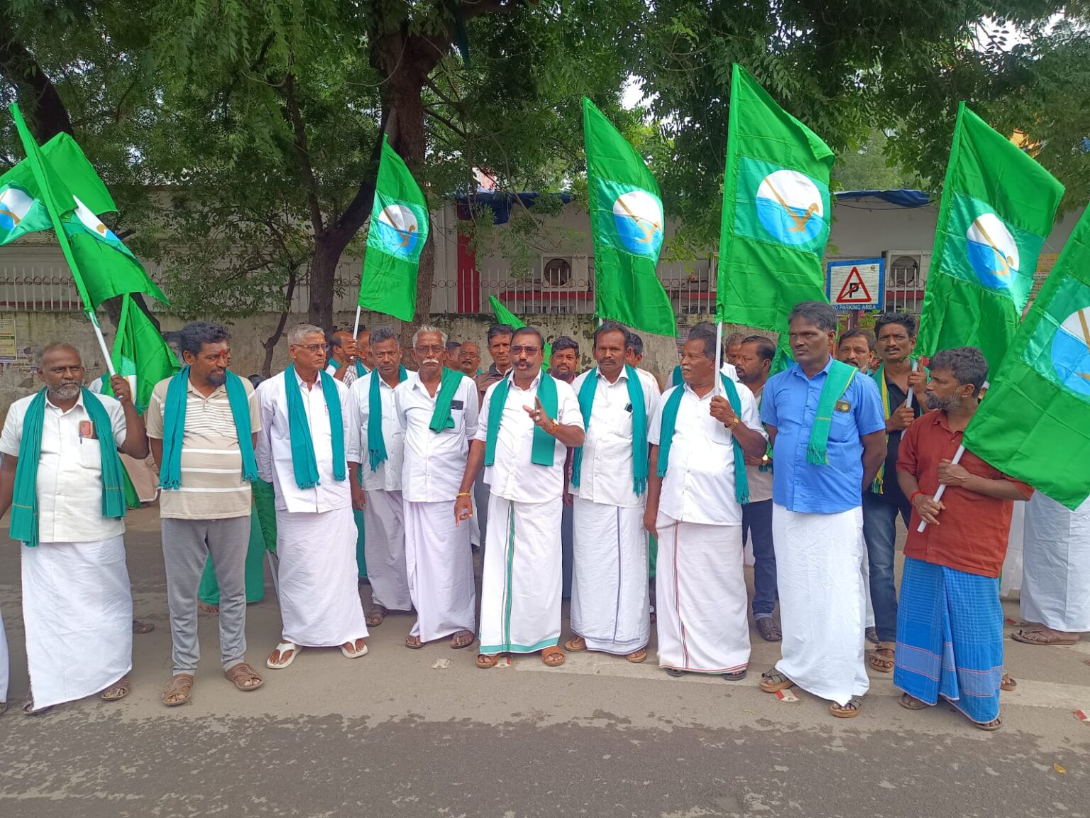 தஞ்சாவூர்: விவசாயிகள் சங்கத் தலைவர் பி ஆர் பாண்டியன் கைதை கண்டித்து தஞ்சை தலைமை தபால் நிலையம் முன்பு விவசாயிகள் ஆர்ப்பாட்டம்.