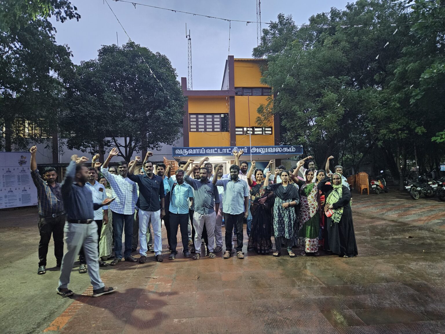 இரவு பகல் பாராமல் பெண் ஊழியர்களை அலுவலகத்திற்கு வரச் சொல்லி பணிகளை முடிக்கச் சொல்லி சித்திரவதை செய்யாதே… எஸ்.ஐ.ஆர் பணிகளுக்கு மூன்று மாத காலம் அவகாசம் வழங்கிடு… புதிய பணியிடங்களை வழங்கிடு.. கணினியில் பதிவேற்றம் செய்ய போதிய கணினிகள், கணினி பணியாளர்கள் வழங்கிடு…” என கோரிக்கைகளை வலியுறுத்தி முழக்கங்களை எழுப்பினர். கிராம நிர்வாக அலுவலர் சங்க வட்டத் தலைவர் செந்தில்குமார் நன்றி கூறினார்.