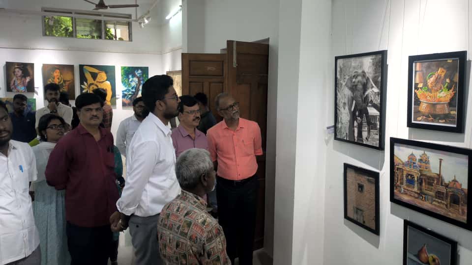 இந்த கண்காட்சியில் கல்லூரி மாணவ-மாணவிகளின் 250 வகையான தொடர்வடிவமைப்பு, வண்ணக்கலை, சிற்பகலை ஓவியங்கள் சிற்பங்கள் காட்சி படுத்தப்பட்டன. மாணவ-மாணவிகள் தயார் செய்த அரசியல், சுற்றுசூழல், உணவு பழக்கவழக்கங்கள் உள்ளிட்ட பற்றிய ஓவியங்கள் பயிற்சி கலெக்டர் கார்த்திக்ராஜா பார்வையிட்டு விளக்கம் கேட்டறிந்தார். இதற்கான ஏற்பாடுகளை கல்லூரி ஆசிரியர்கள், மாணவர்கள் செய்திருந்தனர்.