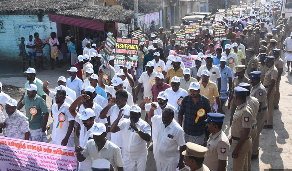 இந்த உண்ணாவிரதப் போராட்டத்தில் 200-க்கும் மேற்பட்ட பெண்கள் மற்றும் குழந்தைகள் மீனவர்கள் பங்கேற்றுள்ளனர்.