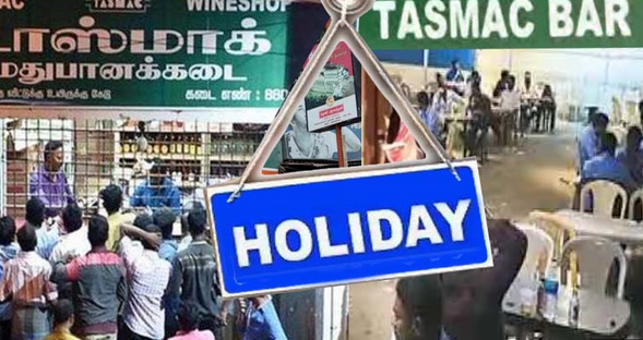 இது தொடர்பாக வெளியிடப்பட்ட அறிக்கையில், “சுதந்திர தினமான 15.08.2025 வெள்ளிக்கிழமை சுதந்திர தினத்தன்று, சென்னை மாவட்டத்தில் உள்ள அனைத்து TASMAC (FL1) மதுபான சில்லறை விற்பனைக் கடைகள் மற்றும் அதனுடன் இணைக்கப்பட்ட பார்கள், FL2 உரிமம் பெற்ற கிளப்புகளுடன் இணைக்கப்பட்ட பார்கள், FL3 உரிமம் பெற்ற ஹோட்டல்களுடன் இணைக்கப்பட்ட பார்கள் மற்றும் FL3(A)/FL3(AA) முதல் FL11 வரை உரிமம் பெற்ற மதுபானக் கடைகள்/பார்கள் கண்டிப்பாக மூடப்படும் என்றும், 15.08.2025 வெள்ளிக்கிழமை சுதந்திர தினத்தன்று எந்த மதுபானமும் விற்பனை செய்யப்படாது என்றும் இதன்மூலம் அறிவிக்கப்படுகிறது.