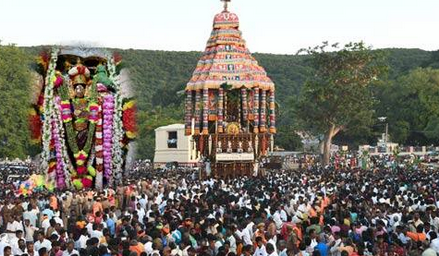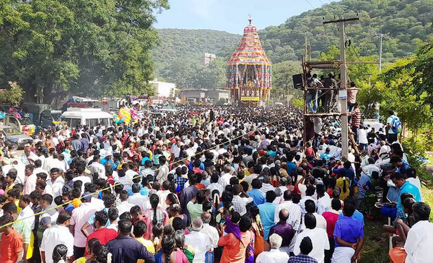 தீபம் மற்றும் தூப பிரசாதங்கள் வழங்கப்பட்டன. காலை 8.40 மணிக்கு, அறங்காவலர் குழுவின் தலைவர் வெங்கடாசலம், அறநிலையத் துறை துணை ஆணையர் யக்ஞ நாராயணன் மற்றும் பிற அறங்காவலர்கள் வடம் பிடித்து தேர் ஊர்வலத்தைத் தொடங்கினர். ஆயிரக்கணக்கான பக்தர்கள் ‘கோவிந்தா, கோவிந்தா’ என்று கோஷமிட்டபடி தேரை இழுத்தனர். வழியில் லட்சக்கணக்கான பக்தர்கள் இறைவனை தரிசனம் செய்தனர்.