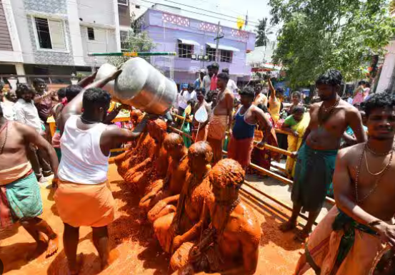 மேலும், 500-க்கும் மேற்பட்ட பக்தர்கள் மாலையில் தீ மிதித்தும், சிலர் மிளகாய் தூள் மற்றும் சாந்து கரைசலில் நீராடியும் நற்கருணைகளை நிறைவேற்றினர். அடுத்து, எலுமிச்சை, செவ்வாழை, ஆப்பிள், சாத்துக்குடி, தர்பூசணி, அன்னாசி உள்ளிட்ட பழங்களால் அலங்கரிக்கப்பட்ட நாகவள்ளி அம்மனின் ஊர்வலம் நடைபெறுகிறது.