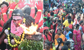 தூத்துக்குடி: குலசேகரப்பட்டினம் முத்தாரம்மன் கோயில் தசரா விழாவின் உச்ச நிகழ்வான மகிஷா சூரசம்ஹாரம் நள்ளிரவில் கடற்கரையில் நடைபெற்றது. விரதத்தை கடைபிடித்து, ஆடைகளை அணிந்து வந்த லட்சக்கணக்கான பக்தர்கள் பக்தியுடன் தரிசனம் செய்தனர்.