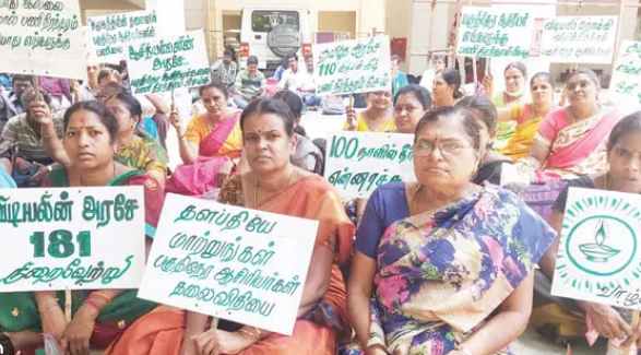 அவர்கள் வாரத்தில் 3 நாட்கள் பள்ளிகளில் கற்பிக்கிறார்கள். அவர்களுக்கு மாத சம்பளம் ரூ. 12,500 தரப்படுகிறது. இந்த சூழ்நிலையில், நிரந்தர வேலைவாய்ப்பு கோரி நீண்ட காலமாக அவர்கள் தொடர்ந்து போராட்டம் நடத்தி வருகின்றனர். இதைத் தொடர்ந்து, பகுதிநேர ஆசிரியர்கள் தங்கள் கோரிக்கைகளை வலியுறுத்தி நேற்று சென்னையில் உண்ணாவிரதப் போராட்டத்தில் ஈடுபட்டனர்.
