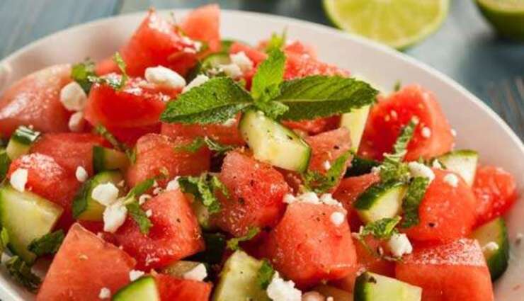 தேவையான பொருட்கள்: தர்பூசணி- 100 கிராம், வெள்ளரி – 100 கிராம், புதினா – சிறிதளவு, பனீர் – 50 கிராம், தேன்/ எலுமிச்சை சாறு – விருப்பத்திற்கு ஏற்ப.
